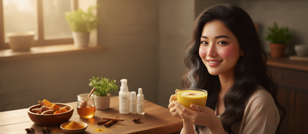 Do you want radiant, clear skin? Sometimes the best beauty secrets aren’t just in your vanity—they are in your kitchen! At Glow World, we believe that true beauty starts from within. Today, we’re talking about a “Golden Elixir” that has been used for centuries: Turmeric Milk (also known as Haldi Doodh).