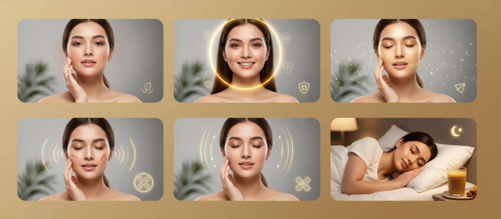 If you have marks from old breakouts, turmeric helps your skin repair itself faster. It’s like a natural healing boost for your face! - Better Sleep = Better Skin